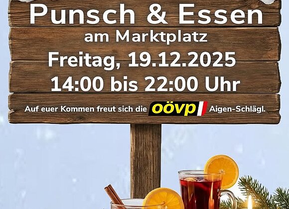 🎄 Wir laden euch herzlich zu 𝗣𝘂𝗻𝘀𝗰𝗵 & 𝗘𝘀𝘀𝗲𝗻 ein! 🎄 📅 Freitag, 19. Dezember 2025, 14:00 - 22:00 Uhr 📍 Marktplatz Aigen-Schlägl Genießt gemütliche…